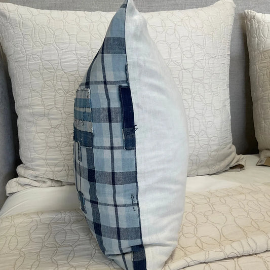 Japanese Boro Plaid Bolster Pillow