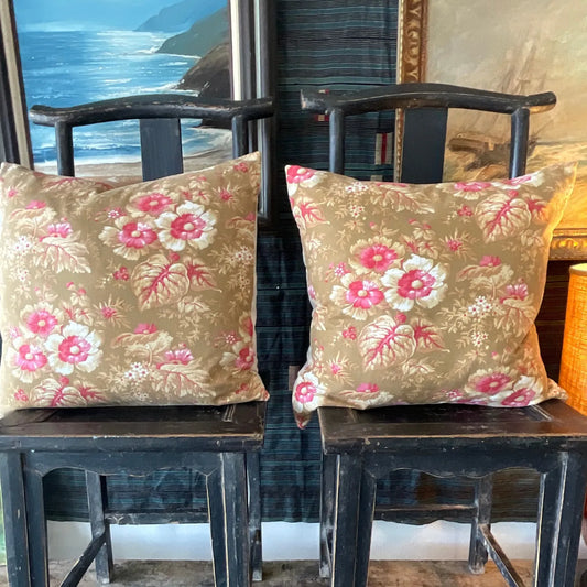 Antique French Floral Khaki w/ Pink 22x22