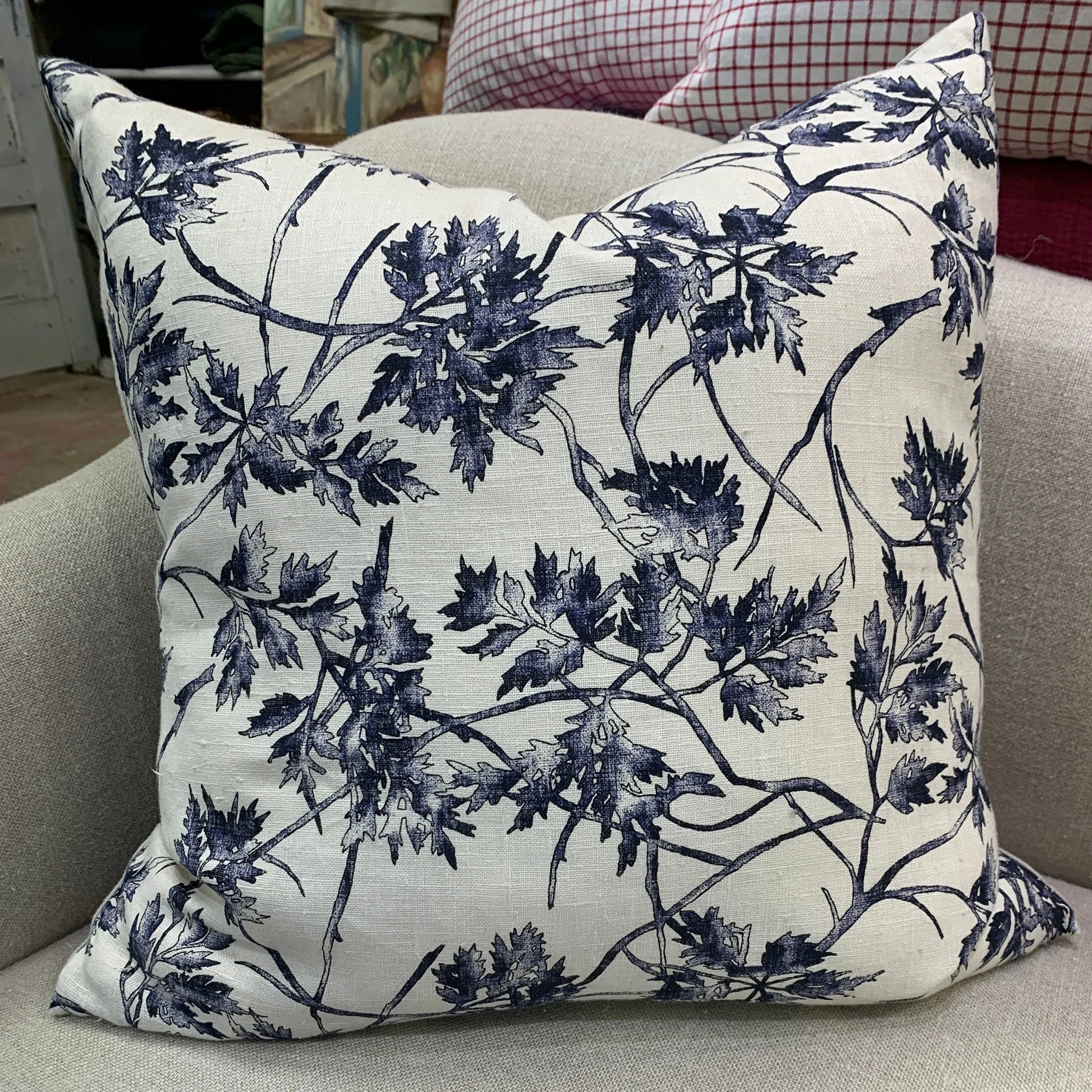 Cream Linen Blue Maple Leaf