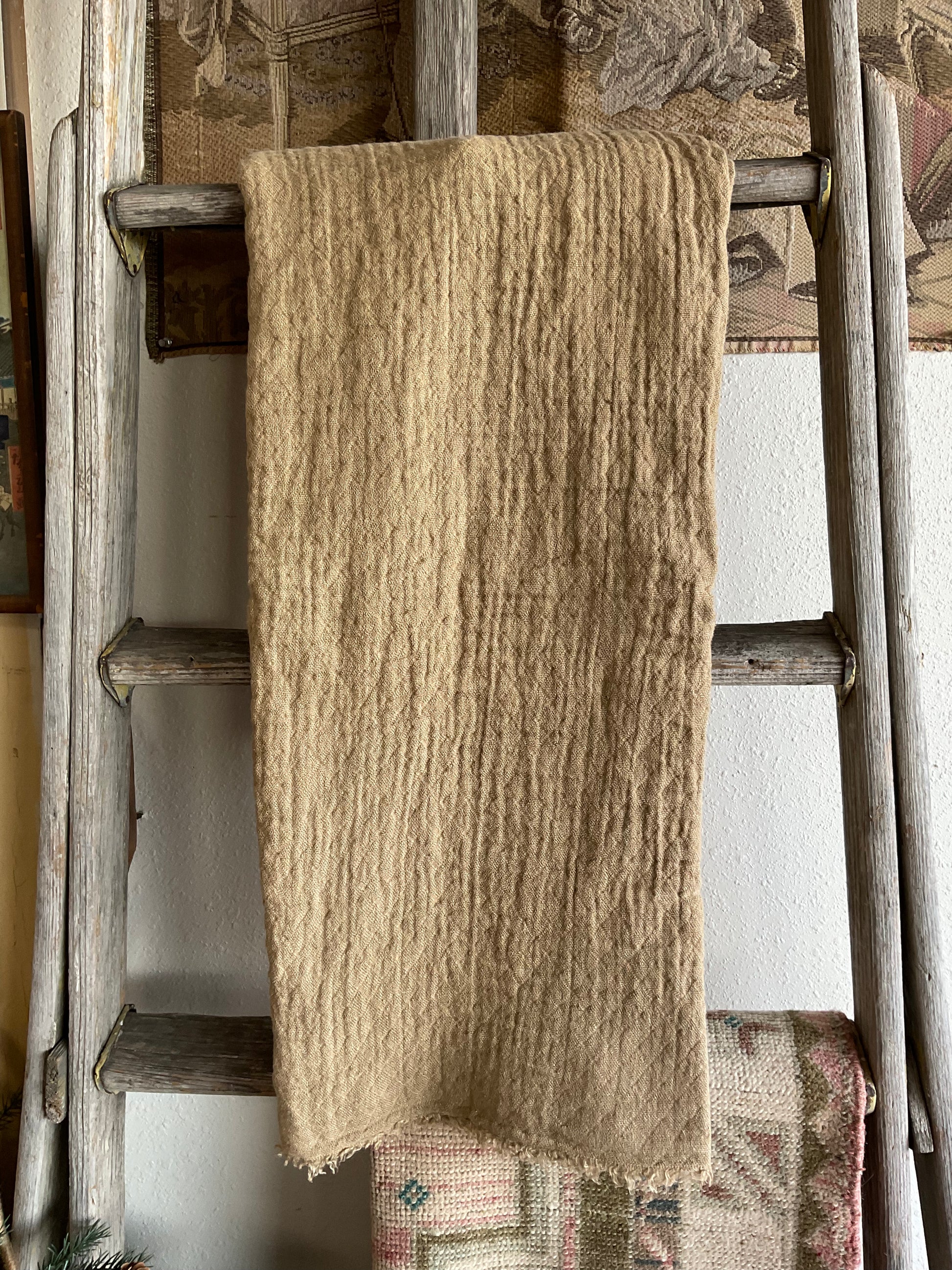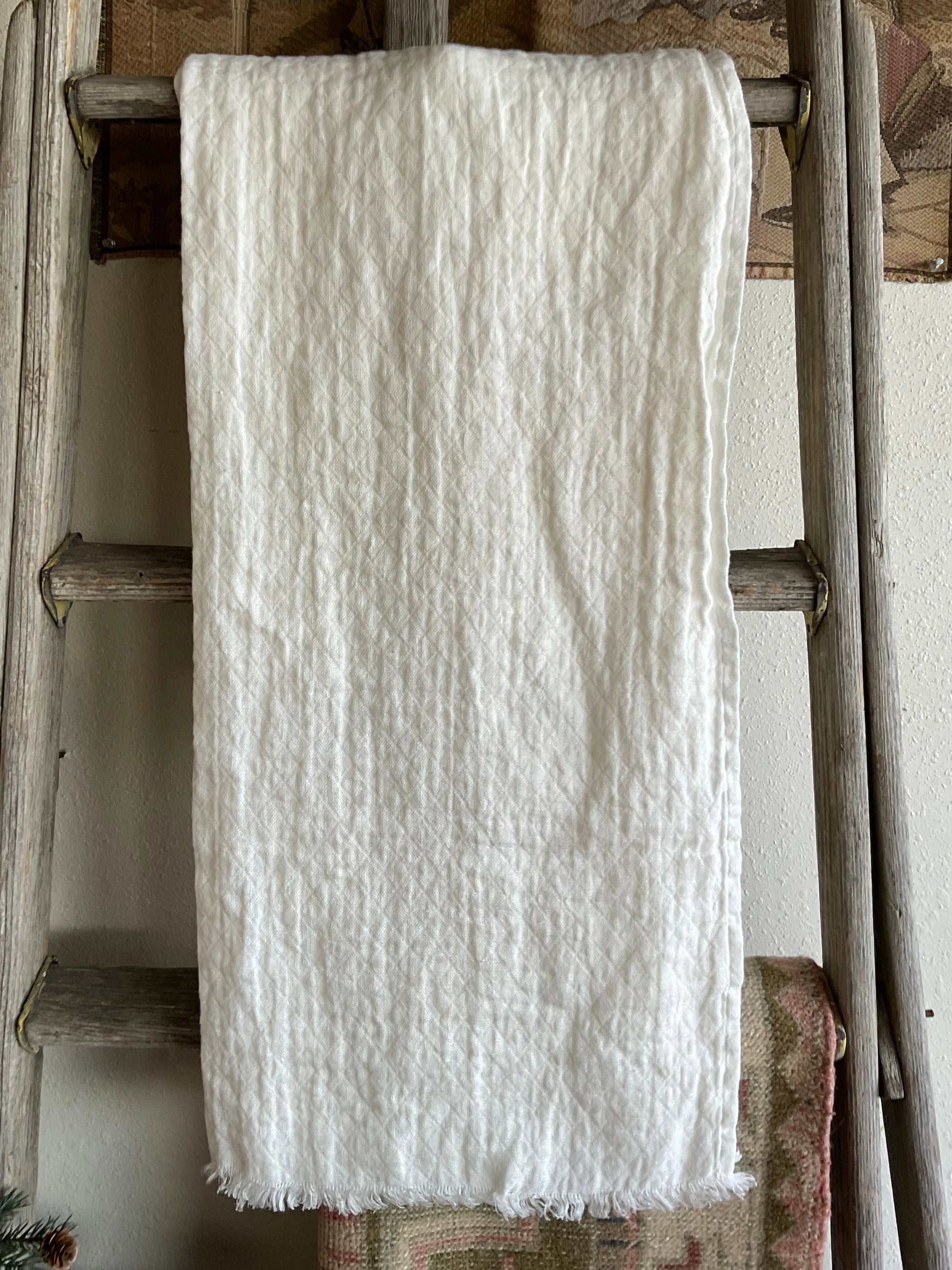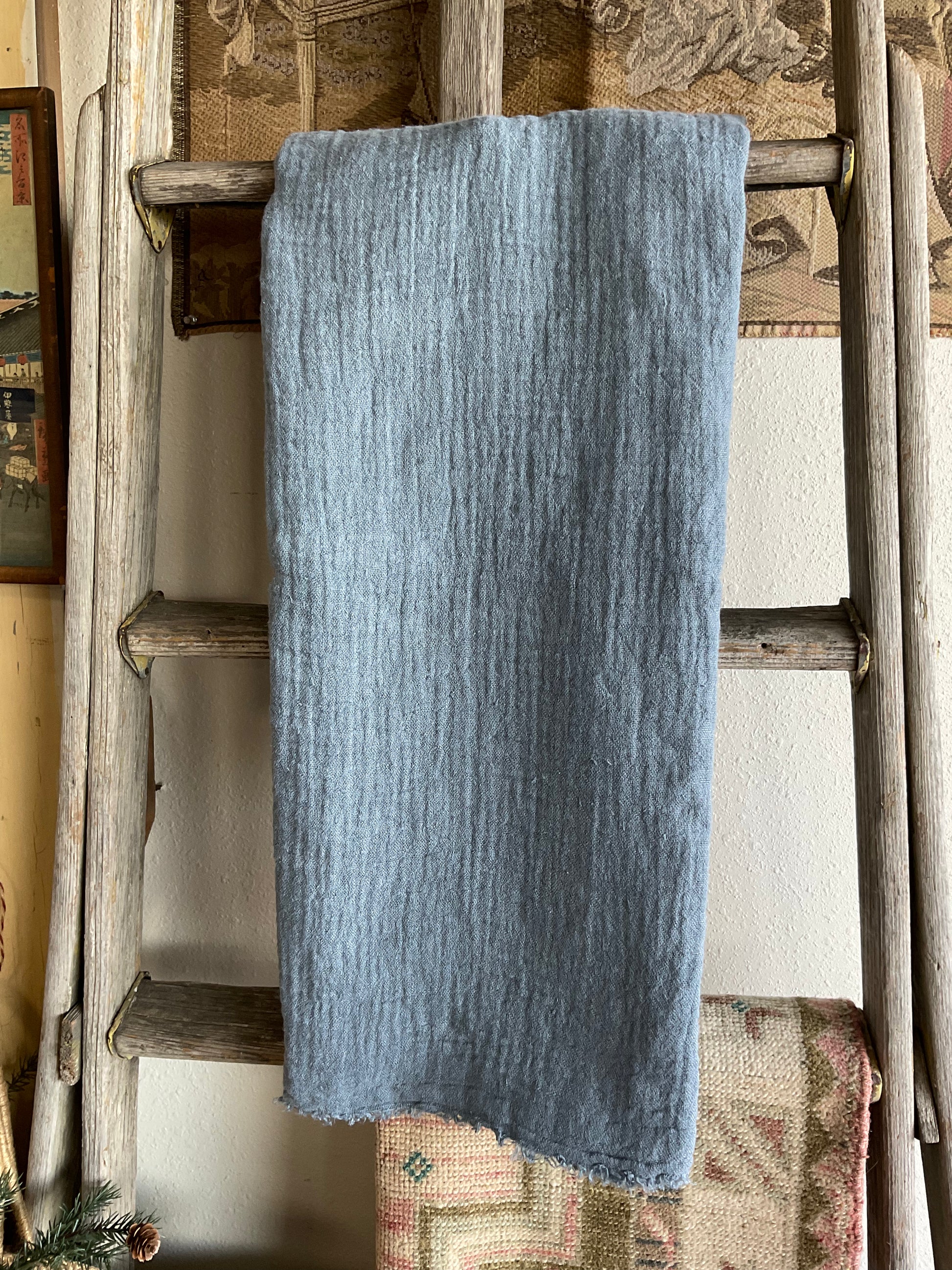 Crushed Linen Tasselled Throw Blanket