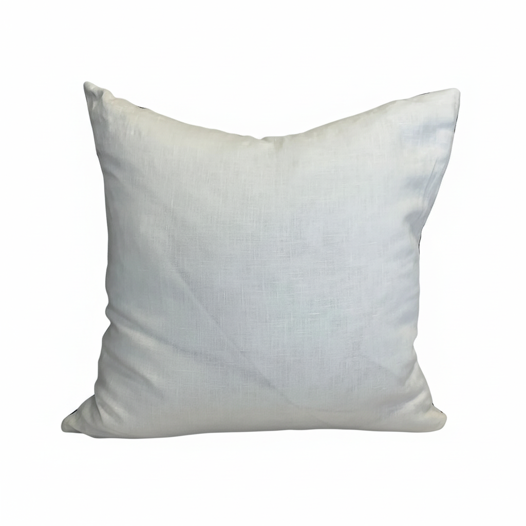 Made from authentic, antique Japanese boro fabric in a blue and indigo plaid, featuring hand-stitched patches and soft indigo tones. The back is lined with a soft creamy white linen for a clean modern contrast. Zipper enclosure.