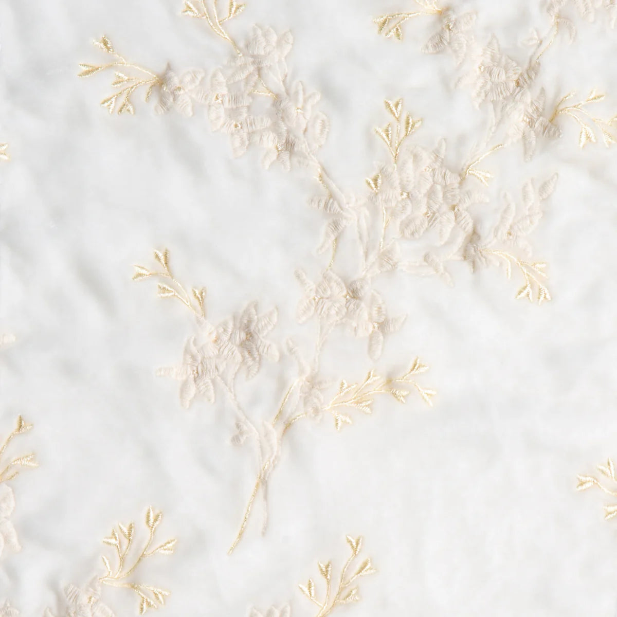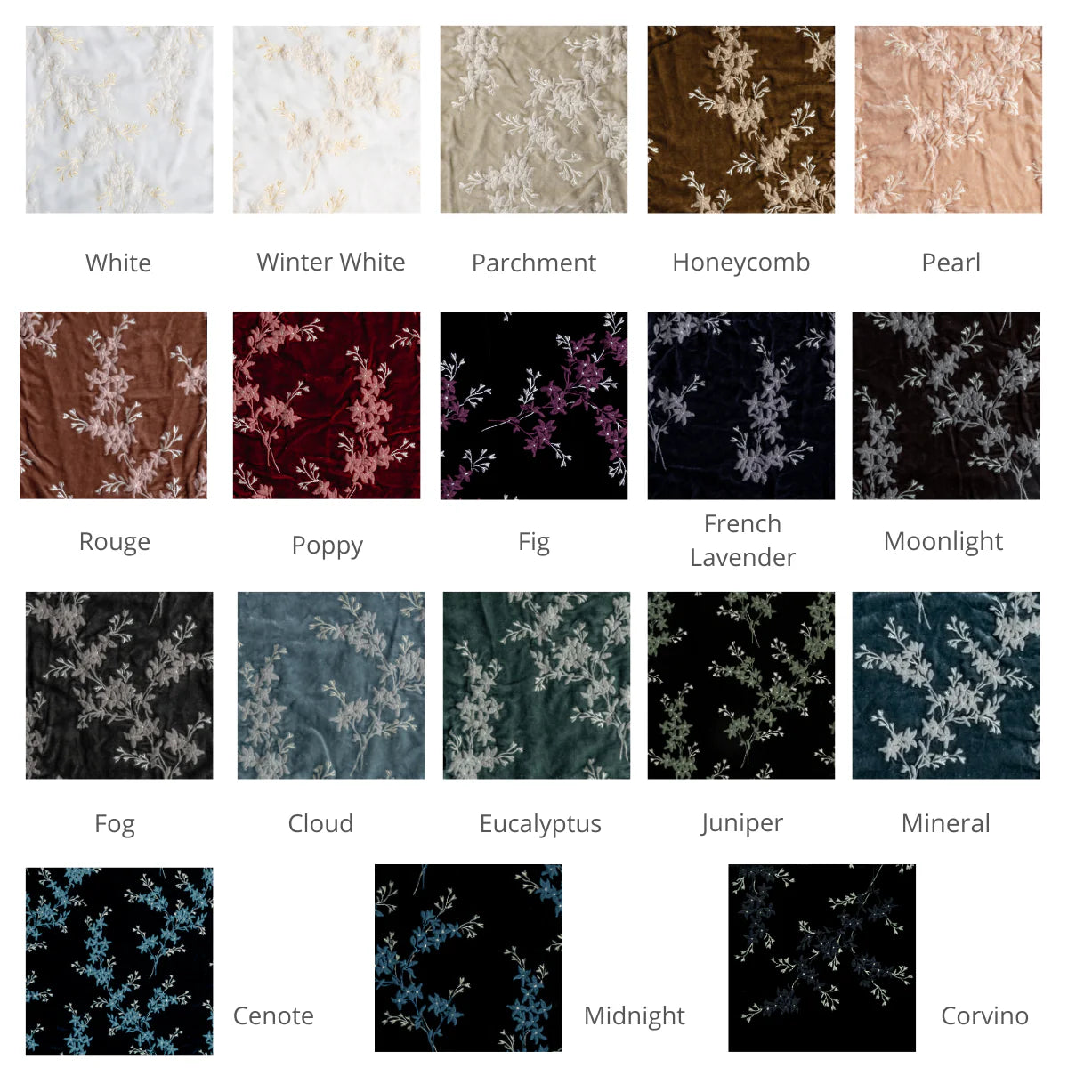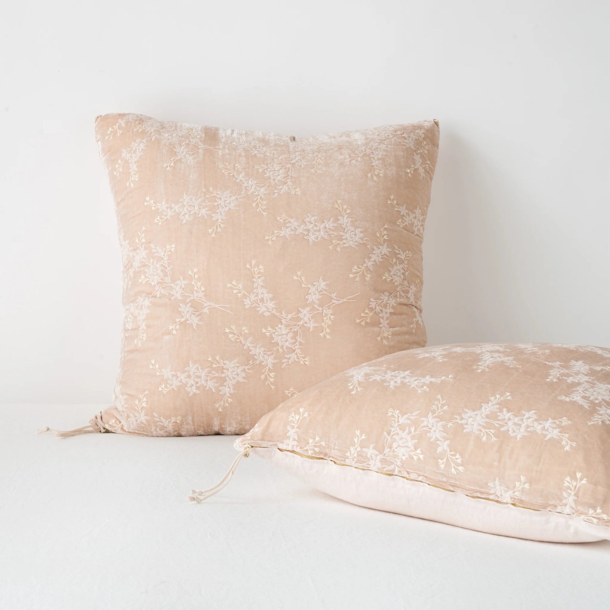 The Lynette Sham, designed in softly textured silk velvet, features delicate floral embroidery with pale gold accents. Finished with a midweight linen back, clean knife edge, and gold zipper closure, Lynette—whose delicate design was inspired by vintage chinoiserie— blends old-world glamour with a modern edge. Order in any of our colors to add a luxe layer to your space.