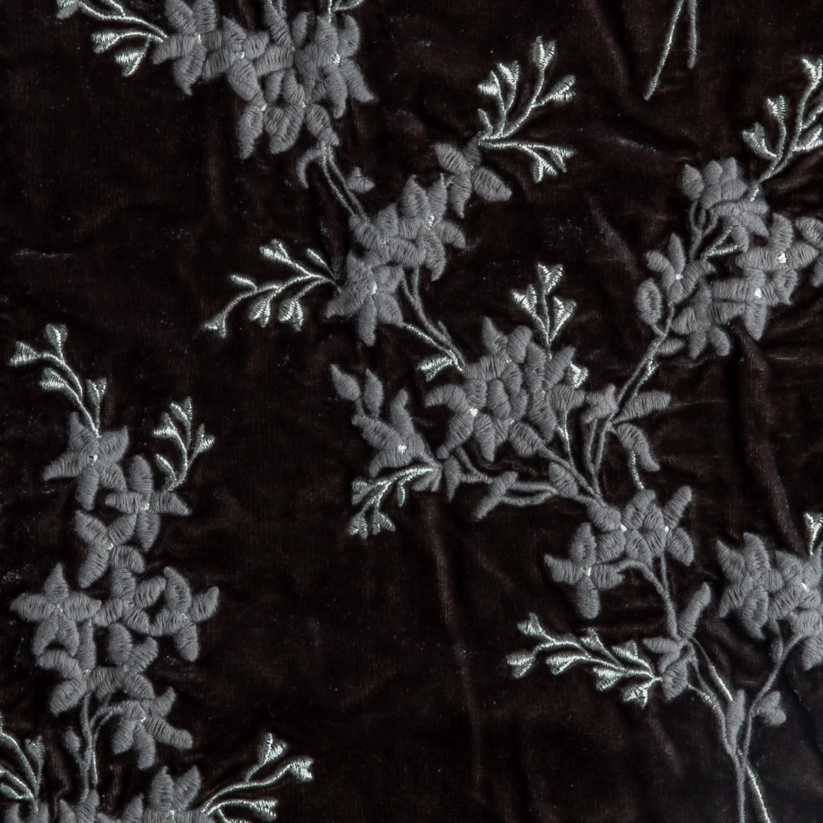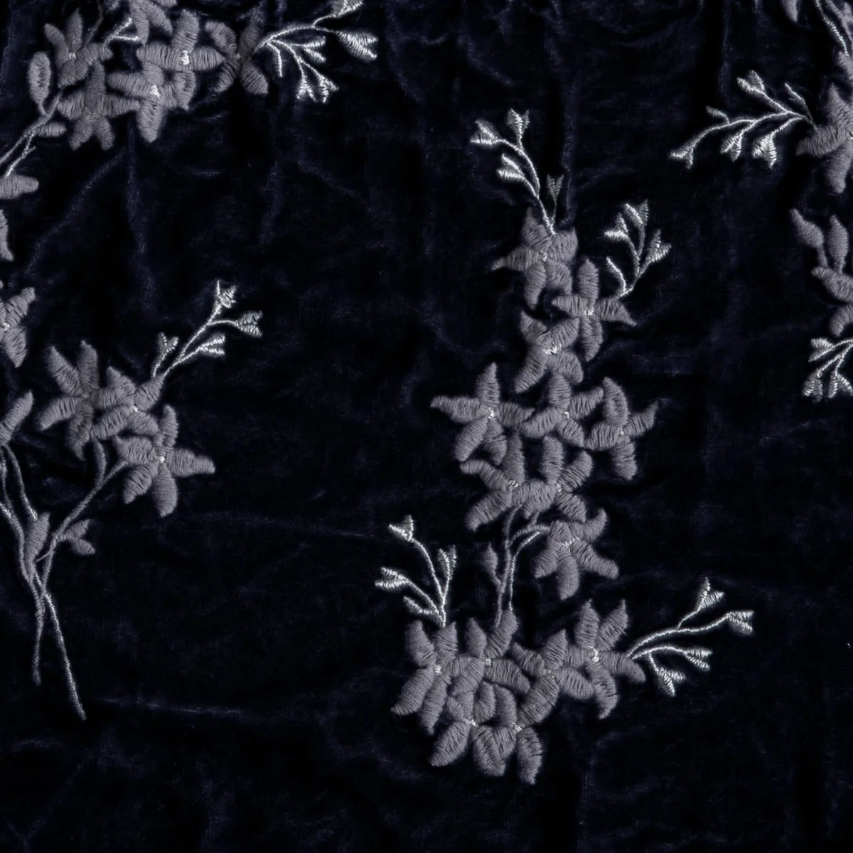 • Embroidered silk velvet with knife edge and backed in midweight linen, zipper closure