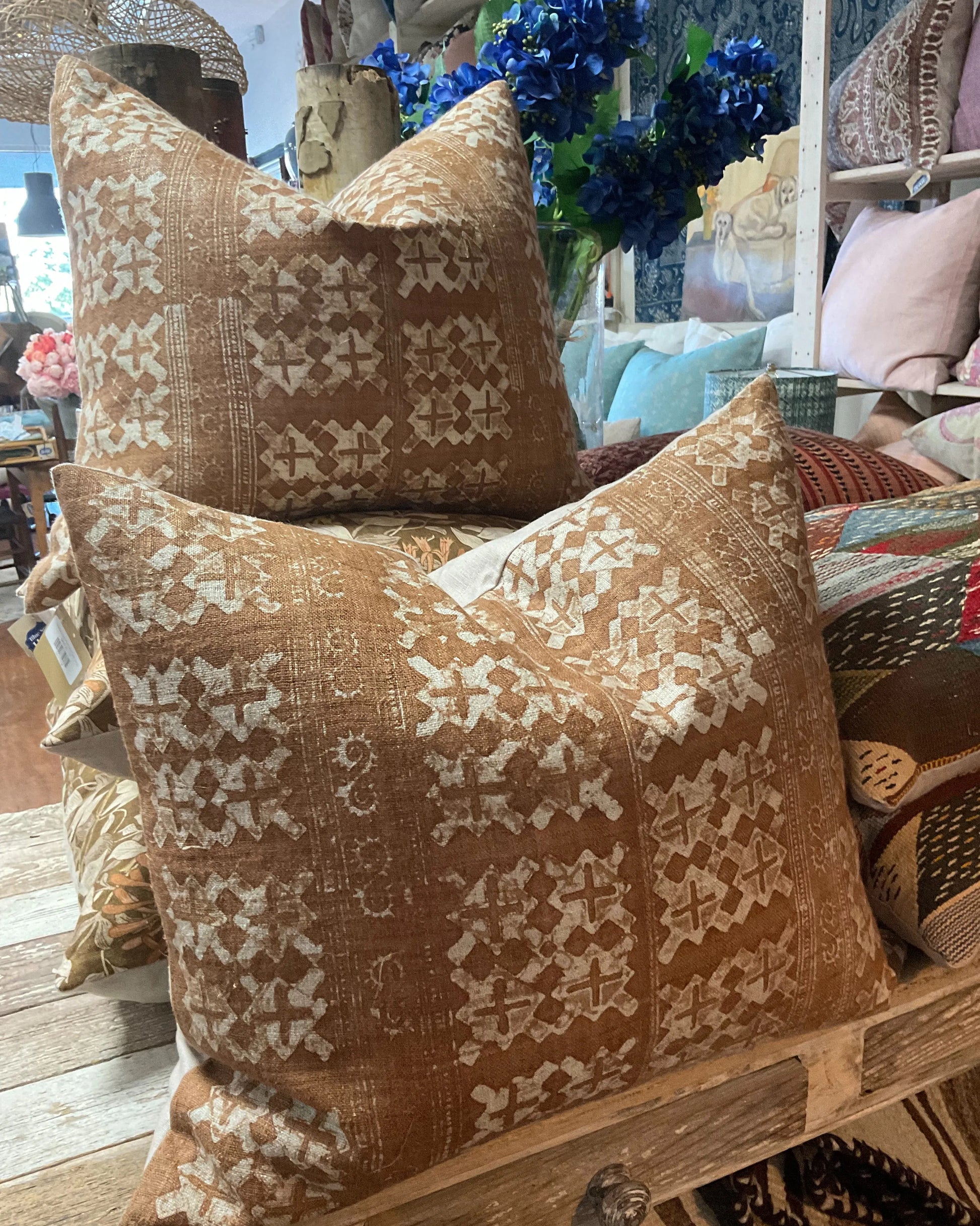 Tobacco Cross Print Hand Dyed 19x22