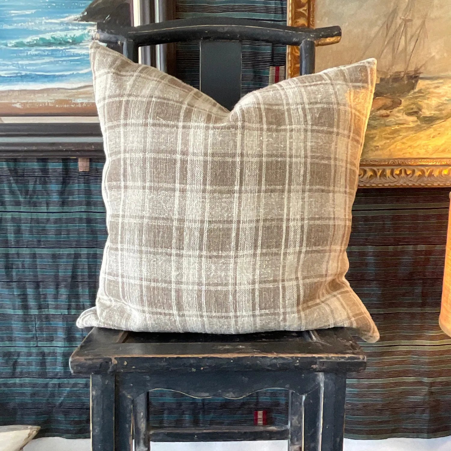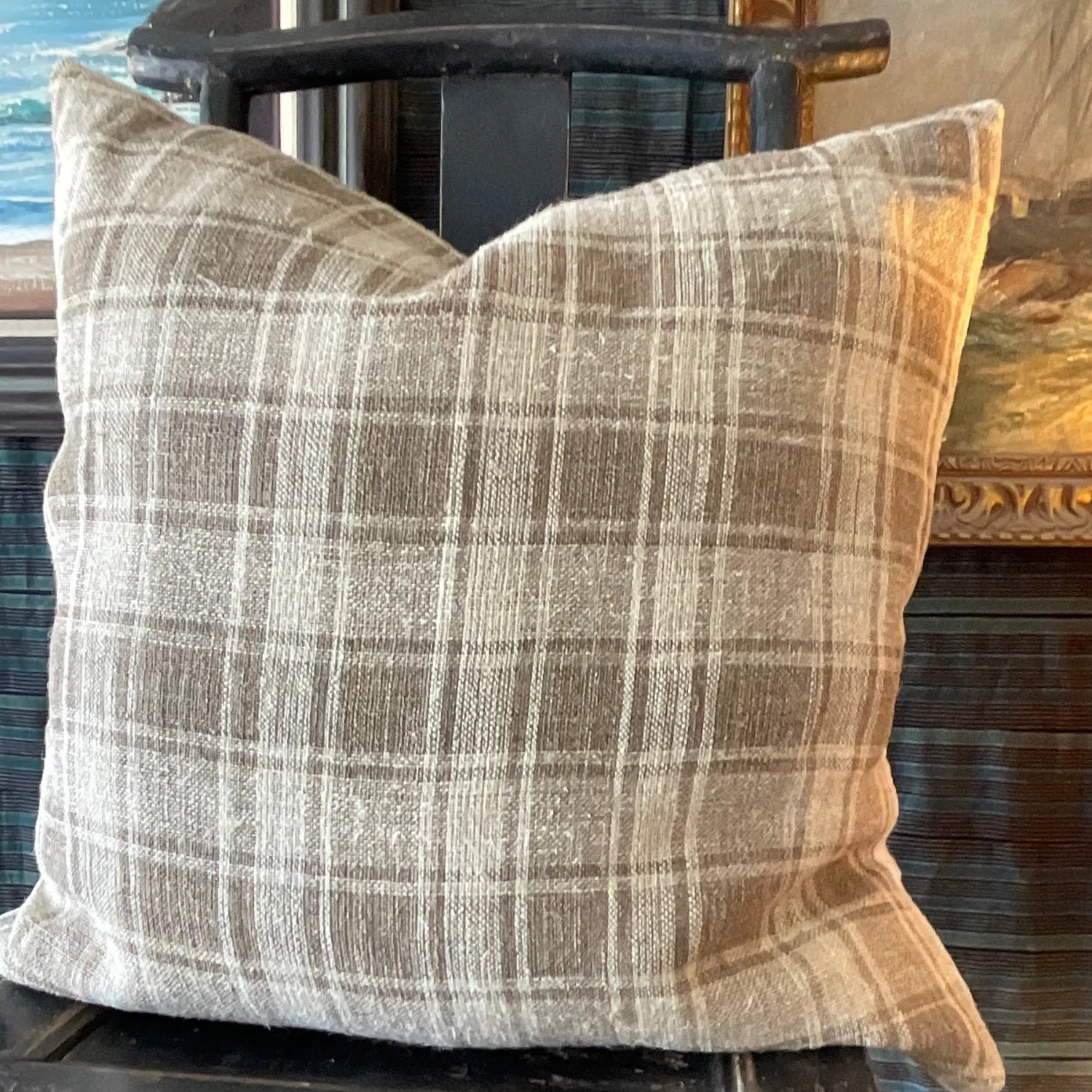Antique Ukrainian Plaid Hemp Pillow 24x24
